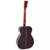 и создает приятное, сбалансированное звучание. Идеальный выбор для разностороннего музыканта, OM-120 имеет верхнюю деку из цельного африканского красного дерева, нижнюю деку и обечайку из цельного африканского красного дерева. Другие особенности премиум-класса включают костяные порожки и перламутровую декорацию розетку. Эта модель также имеет порожек шириной 1¾ дюйма на грифе Guild винтажной формы, культовую эмблему Chesterfield на голове грифа, напоминающую о Guilds 1960-х годов, "черепаховый" пикгард и чехол премиум-класса Guild.