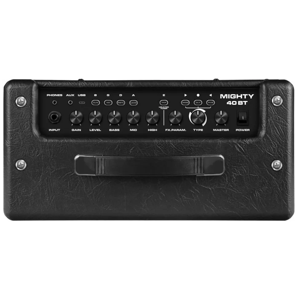 Mighty 40 BT — это моделирующий усилитель с 10-дюймовым динамиком мощностью 40 Вт с 4 каналами, цифровыми эффектами, 3-полосным эквалайзером и тюнером. Вы можете подключить любое устройство по Bluetooth для воспроизведения под любимую музыку или минусовку.