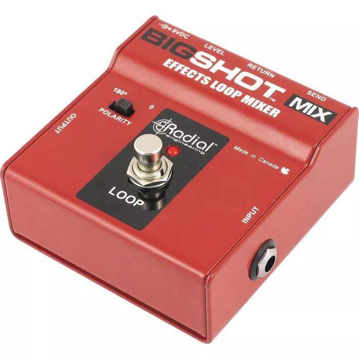 - Педаль BigShot Mix , выполняющая функцию посыла-возврата, имеет вход и выход (джеки), посыл-возврат (пара джеков) параллельного типа, переключатель инвертирования фазы посыла, регулятор чувствительности возврата (под отвертку), селектор выходного сигнала (металлическая кнопка) и светодиодный индикатор активности посыла-возврата, разъем питания. На выход может быть назначен входной сигнал (непосредственно с входного разъема) или микс посыла-возврата. Встроенный микшер имеет входной буфер, не нагружающий такие деликатные источники сигнала, как электрогитара с пассивной электроникой. Питание осуществляется постоянным напряжением 9 В от адаптера (приобретается отдельно).