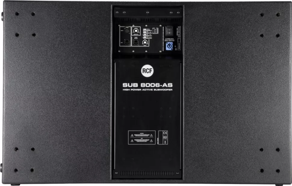 - RCF SUB 8006-AS — крупнейший и самый мощный активный сабвуфер в профессиональной серии. Укомплектованный двумя низкочастотными 18-дюймовыми динамическими головками, этот сабвуфер предназначен для производства баса в серьёзных количествах. Благодаря цифровому усилительному модулю мощностью 2500 Вт, RCF SUB 8006-AS может работать в самых сложных ситуациях.