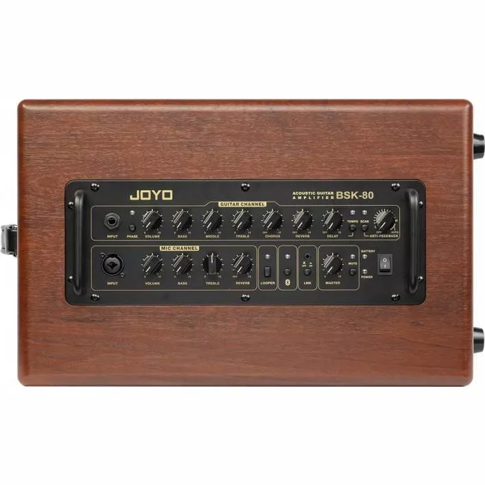 Joyo BSK-80 – многофункциональный комбоусилитель для акустической гитары мощностью 80 ватт обеспечивает широкий спектр возможностей для живых выступов. Оснащенный встроенным аккумулятором, он может работать автономно, что делает его идеальным для выездов и событий на открытом воздухе.