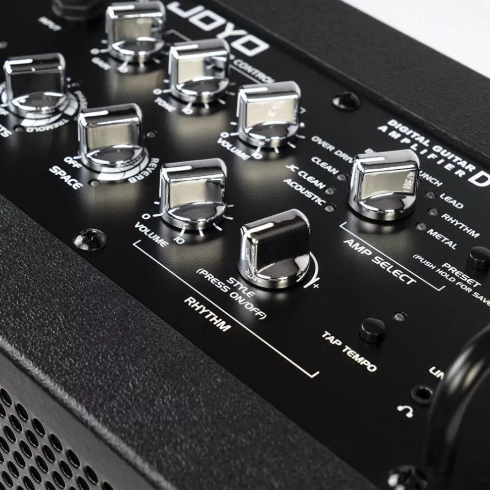 Учебный гитарный усилитель JOYO DC-15s предлагает 36 ударных паттернов; можно регулировать как темп, так и громкость, что сделает вашу практику или выступление более приятным.