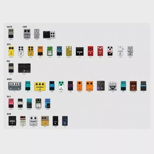Эффекты: GATE, CMP, EFX, EQ, MOD, DLY, RVB