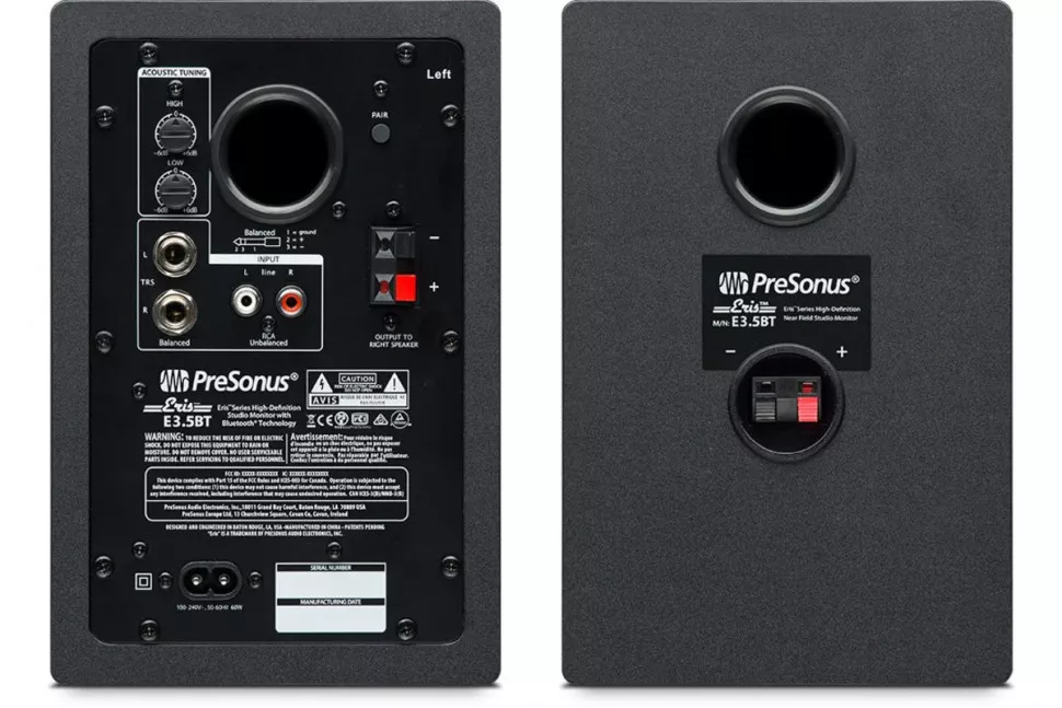 В каждом студийном мониторе серии Eris используется низкочастотный драйвер из тканого композитного материала. Структура и характер 3.5-дюймового низкочастотного динамика PRESONUS Eris E3.5 BT обеспечивают плотные басы, которые вы можете ощутить, а также более чистый звук в целом. 1-дюймовый твиттер с шелковым куполом производит плавный и совершенный звук, точно воспроизводя переходы и высокие частоты. Твиттер спроектирован так, чтобы излучать звук с довольно широкой диаграммой направленности, создавая большую оптимальную зону прослушивания, или же "sweet spot", чтобы вы могли двигаться и по-прежнему слышать точное стереоизображение. Студийные мониторы PRESONUS Eris E3.5 BT с мощностью по 25 Вт на каждый обеспечивают достаточное количество панча, при этом чистый и точный звук.