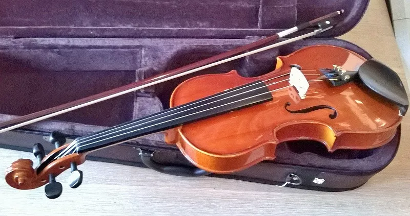 В отличие от большинства бюджетных скрипок, эта изготовлена в точном соответствии со спецификациями и размерами, оснащена накладкой грифа и колками из древесины твердых пород. Комплектация включает в себя привлекательный легкий кейс с коричневой нейлоновой обивкой и качественный деревянный смычок. Инструмент изготовлен из цельной древесины музыкальных пород и обладает исключительным соотношением цена/качество; не стоит даже близко сравнивать его с аналогичными по цене «поделками».
